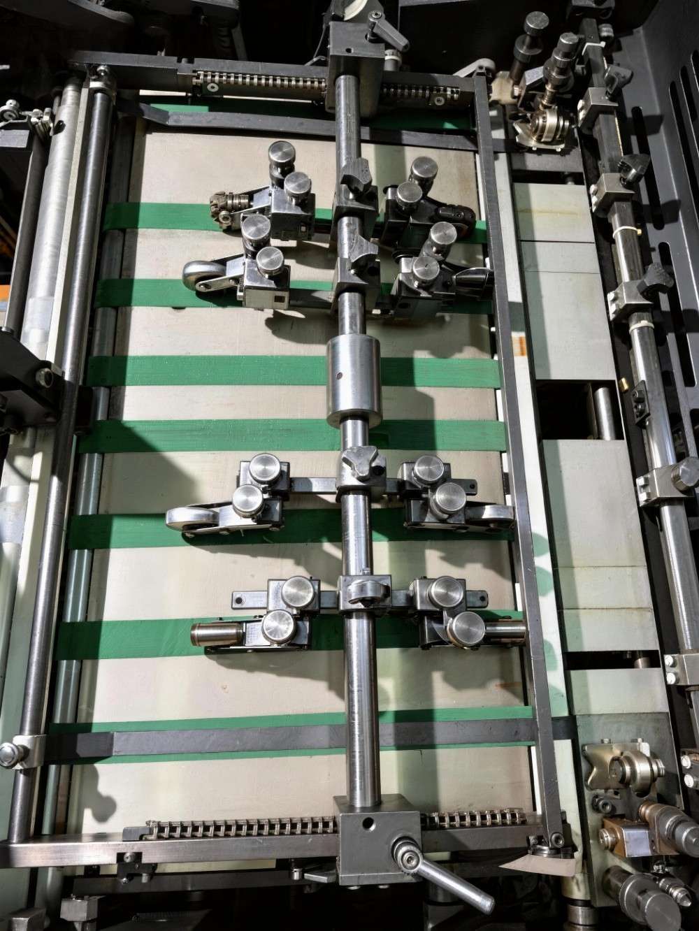 3) စာနယ်ဇင်းများတွင် cast iron integral base၊ side plates နှင့် rollers များပါ၀င်သော အကြီးစားစက်မှုတည်ဆောက်ပုံရှိသည်။ ဤခိုင်ခံ့သောဖွဲ့စည်းပုံသည် မြင့်မားသောခိုင်ခံ့မှုနှင့် တင်းကျပ်မှုတို့ကို ပေးစွမ်းသည့်အပြင် စာနယ်ဇင်းအတွက် ဝတ်ဆင်-ခံနိုင်ရည်ရှိမှုနှင့် တုန်လှုပ်မှု-စုပ်ယူနိုင်မှုစွမ်းရည်တို့ကို ပေးစွမ်းနိုင်သောကြောင့် စာနယ်ဇင်းများသည် မြန်နှုန်းမြင့်လုပ်ဆောင်မှုအတွင်း တည်ငြိမ်ချောမွေ့စွာ လုပ်ဆောင်နိုင်ပြီး လုပ်ငန်းစဉ်အတွင်း တသမတ်တည်း ပုံနှိပ်ခြင်းဖိအားကို ထိန်းသိမ်းထားကြောင်း အာမခံပါသည်။