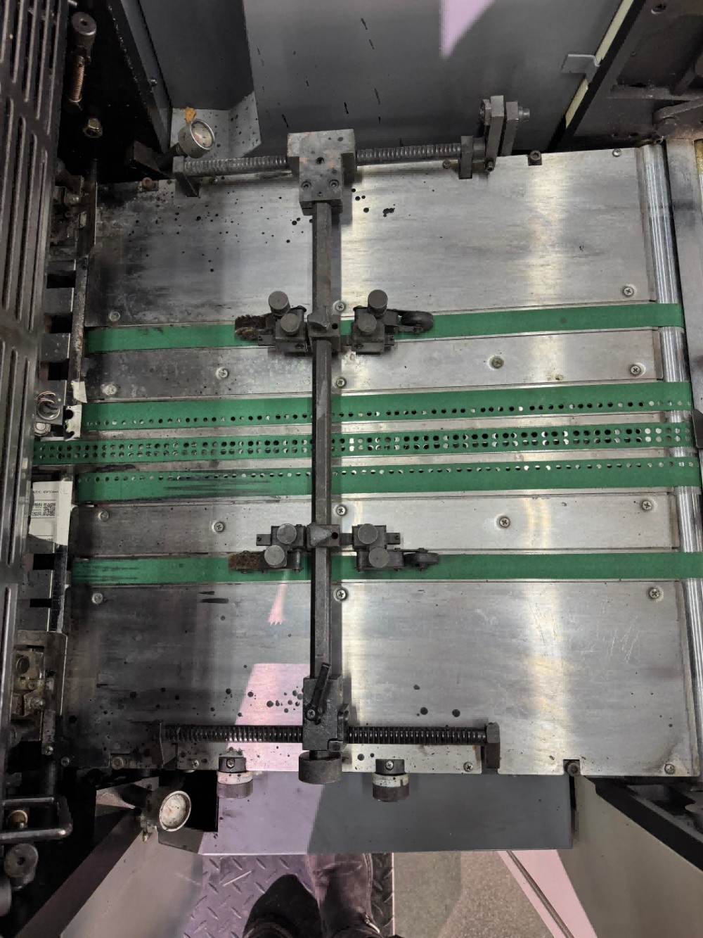တိကျမှုမြင့်မားသော ဝက်ဝံများနှင့် တိကျသောမြေပြင် helical ဂီယာများသည် အူတိုင်ဒီဇိုင်း၏ တစ်စိတ်တစ်ပိုင်းဖြစ်သည်။ ၎င်းတို့သည် တိတ်ဆိတ်၊ တည်ငြိမ်ပြီး ချောမွေ့သော ပါဝါပို့လွှတ်မှုကို ပိုမိုပံ့ပိုးပေးသည်။ နွေဦးနှစ်ထပ် ဂရစ်ကွက်များသည် စက္ကူချော်ထွက်ခြင်းကို အရှိန်မြင့်စွာဖြင့် ရပ်တန့်ပြီး ရေရှည်အပြေးတွင် တသမတ်တည်း ဆုပ်ကိုင်ထားပါ။ semi-automatic ink roller သန့်ရှင်းရေးစနစ်သည် လည်ပတ်ရလွယ်ကူသည်။ ၎င်းသည် သန့်ရှင်းရေးအချိန်ကို လျှော့ချပေးကာ အရောင်ပြောင်းလဲမှုများကို မြန်ဆန်စေကာ အော်ပရေတာ၏ အလုပ်ဝန်ကို လျှော့ချပေးပြီး ထုတ်လုပ်မှု စွမ်းဆောင်ရည်ကို မြှင့်တင်ပေးသည်။