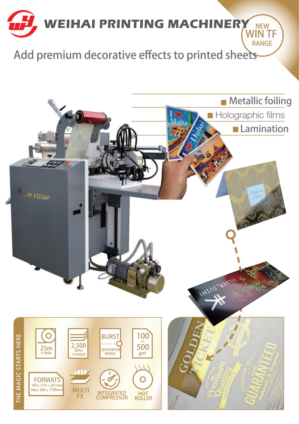 WIN အမှတ်တံဆိပ်သည် ပရော်ဖက်ရှင်နယ် China Digital Press ထုတ်လုပ်သူဖြစ်ပြီး ယုံကြည်စိတ်ချရသော Laminating နှင့် Foiling Machine ပေးသွင်းသူဖြစ်ပြီး တတ်နိုင်သော စက်ရုံစျေးနှုန်းနှင့် စိတ်ကြိုက်ဝန်ဆောင်မှုအပြည့်ဖြင့် ရောင်းချရန်အတွက် စက်ရုံတိုက်ရိုက် Digital Press ကို ပေးဆောင်ပါသည်။ ထိရောက်မှုမြင့်မားသော Post-press finishing machine ကိုမည်ကဲ့သို့ရွေးချယ်ရမည်ကို သင်မေးနေပါက၊ ကျွန်ုပ်တို့350mm Sheet-Fed Laminating နှင့် Foiling စက်နှင့် Platemaking-Free Laminating and Foiling Machine သည် သင့်အတွက် အကောင်းဆုံးရွေးချယ်မှုဖြစ်သည်။