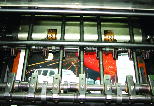3. စာနယ်ဇင်းတွင် လှည့်ပတ်နေသော စက္ကူသယ်ယူပို့ ဆောင်သည့် ခါးပတ်သုံးခုကို တပ်ဆင်ထားသည့် ဖုန်စုပ်စုပ်စားပွဲတစ်ခုနှင့် ချိတ်ဆက်ထားသော စဉ်ဆက်မပြတ် စာရွက်စာကျွေးသည့် မော်ဂျူးတစ်ခု ရှိသည်။ ထိုသို့သော စက္ကူသယ်ယူပို့ဆောင်ရေးစနစ်သည် ကျယ်ပြန့်သောအထူရှိသော စာရွက်အမျိုးအစားအမျိုးမျိုးကို ယုံကြည်စိတ်ချစွာ ပို့ဆောင်နိုင်သည်။